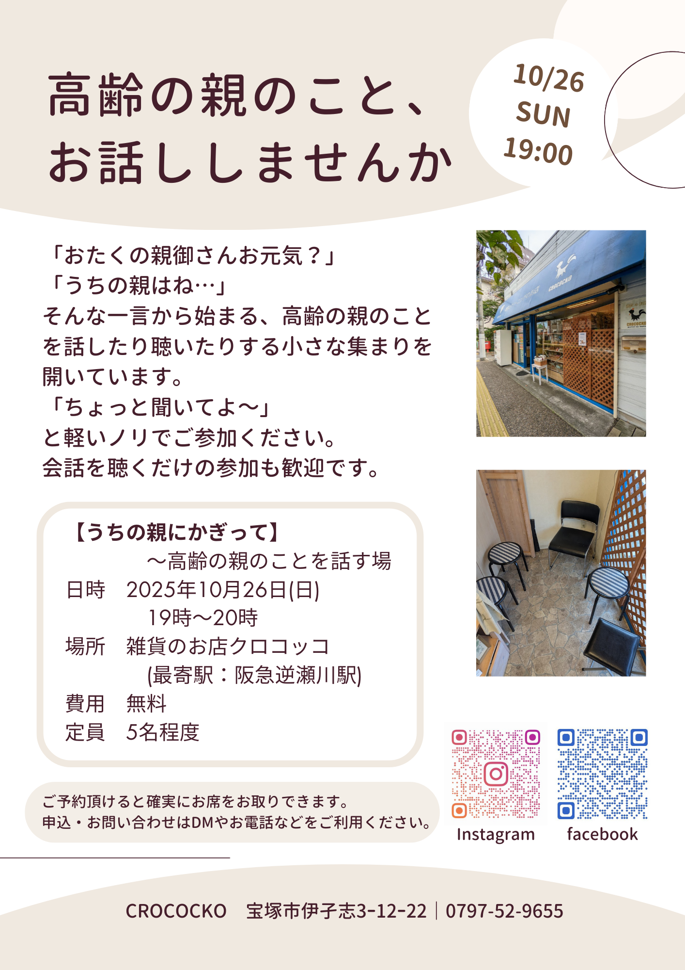 10/26 【店内イベント】うちの親にかぎって(19時~20時)